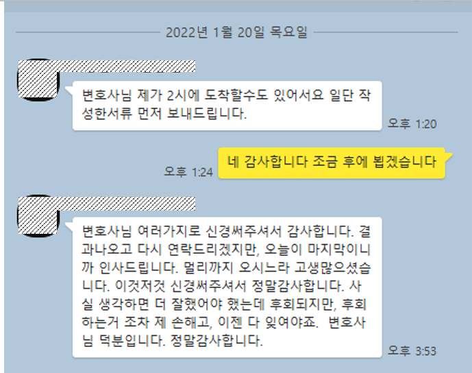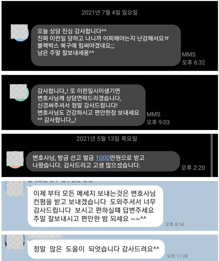 좋은 결과로 사건을 마친 의뢰인분들의 도움으로 점점 더 많은 일을 하게 되었습니다.